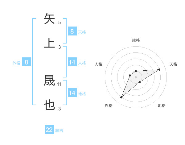 矢上 晟也さんを姓名の画数から五運を鑑定