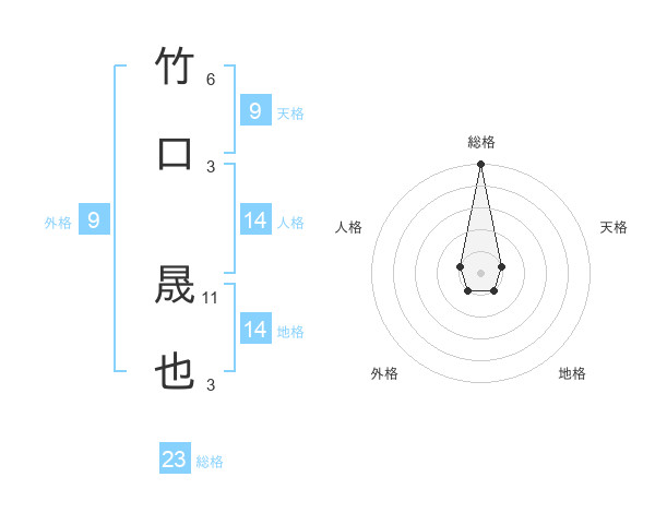 竹口 晟也さんの総格は23画の5点!