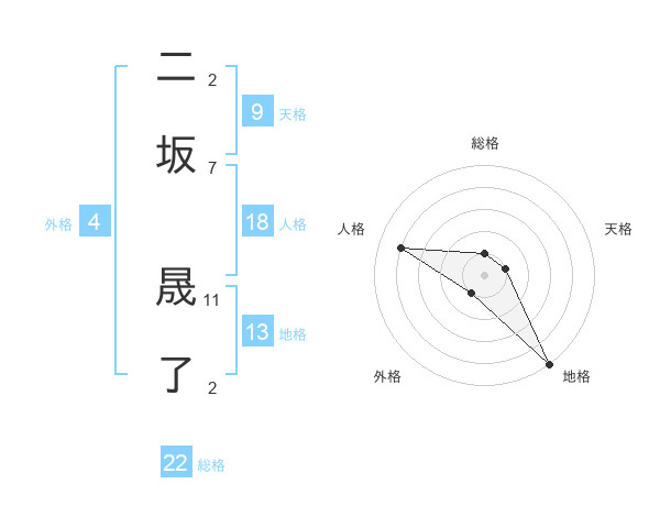二坂 晟了さんを姓名の画数から五運を鑑定