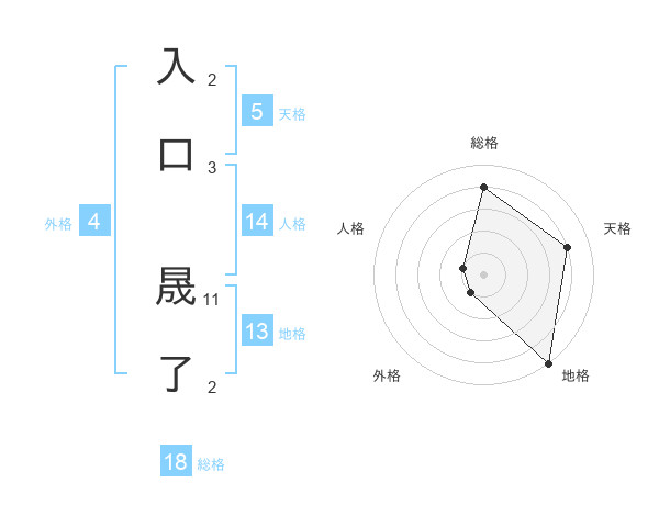 入口 晟了さんの総格は18画の4点!