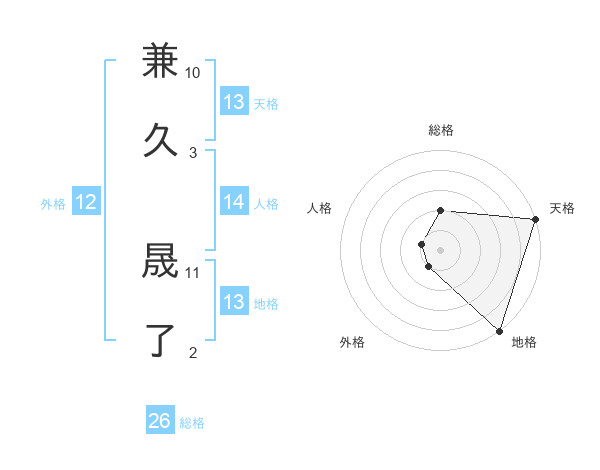 兼久 晟了さんの総格は26画の2点!