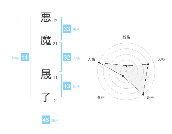 悪魔 晟了さんを姓名の画数から五運を鑑定