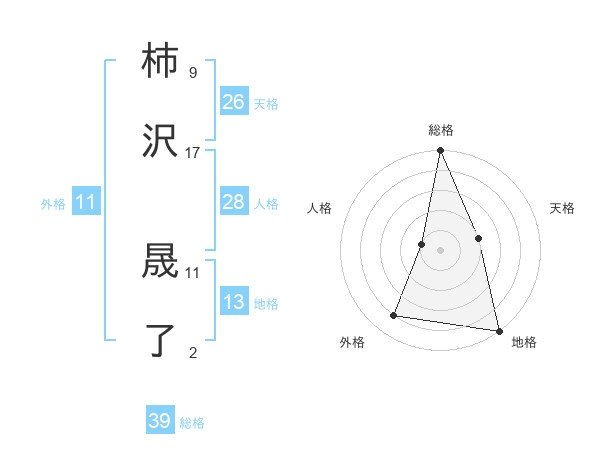 柿沢 晟了さんの総格は39画の5点!