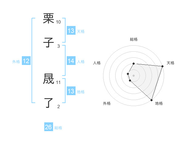 栗子 晟了さんの総格は26画の2点!
