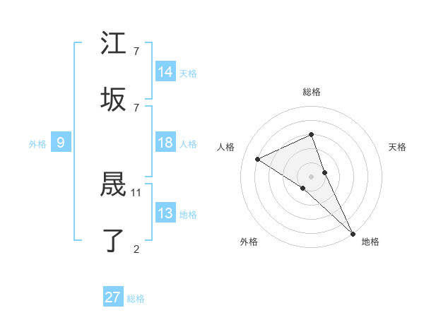 江坂 晟了さんを姓名の画数から五運を鑑定
