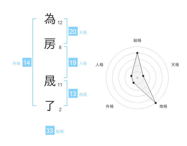 為房 晟了さんの総格は33画の4点!
