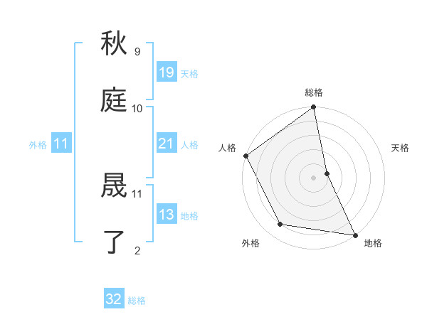 秋庭 晟了さんを姓名の画数から五運を鑑定