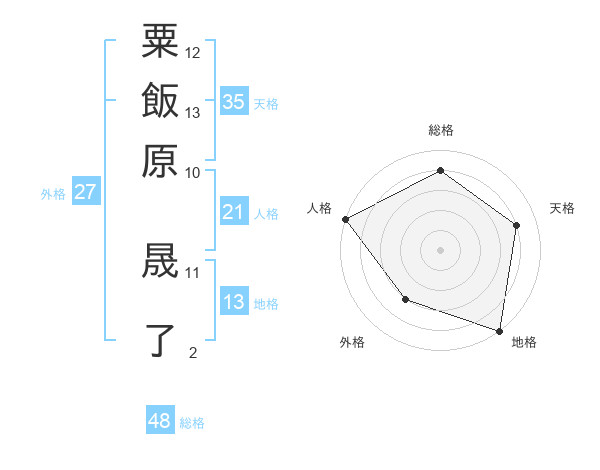 粟飯原 晟了さんを姓名の画数から五運を鑑定