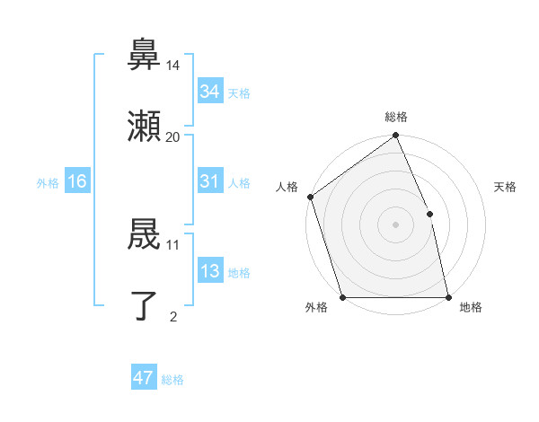 鼻瀬 晟了さんの総格は47画の5点!