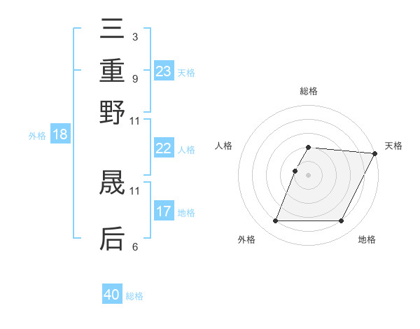 三重野 晟后さんを姓名の画数から五運を鑑定