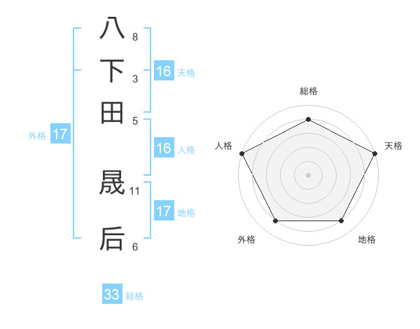 八下田 晟后さんを姓名の画数から五運を鑑定