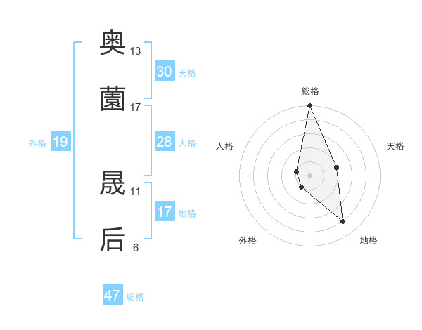 奥薗 晟后さんを姓名の画数から五運を鑑定
