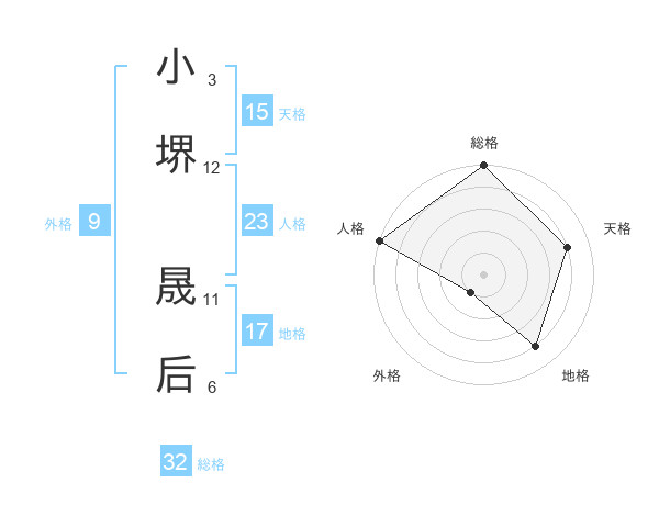 小堺 晟后さんの総格は32画の5点!