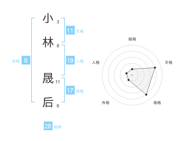 小林 晟后さんの総格は28画の1点!