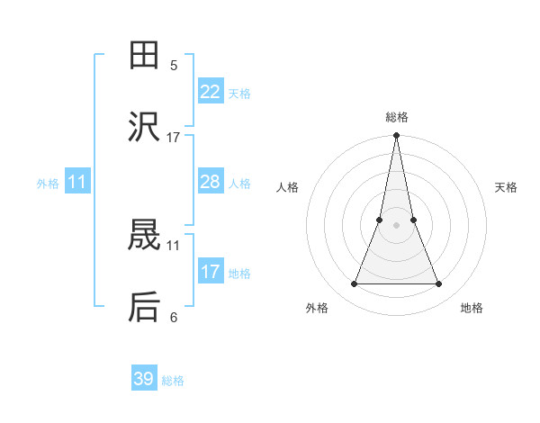 田沢 晟后さんを姓名の画数から五運を鑑定