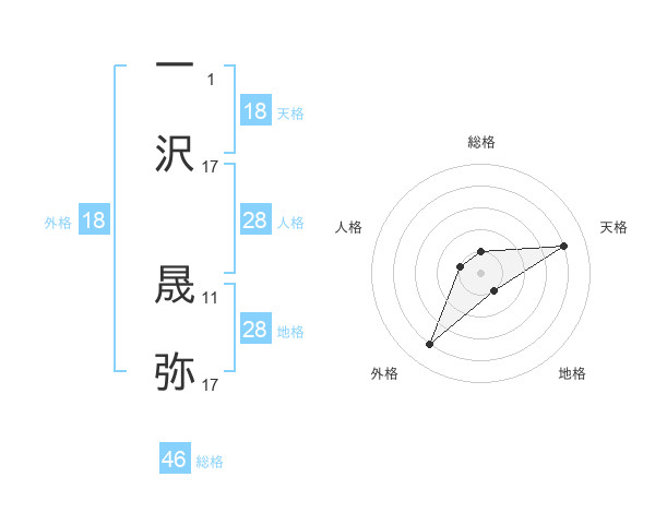 一沢 晟弥さんの天格は18画の4点!