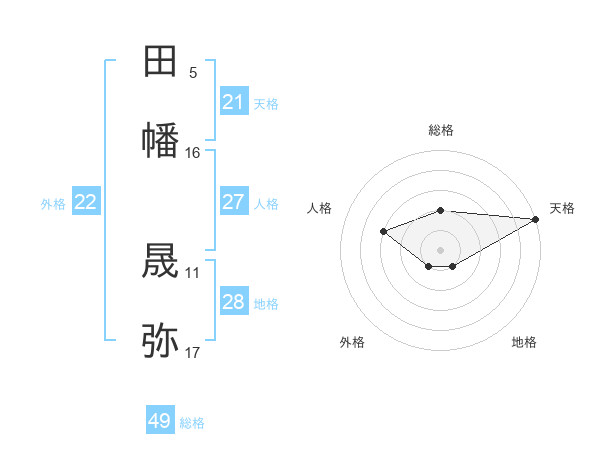 田幡 晟弥さんを姓名の画数から五運を鑑定