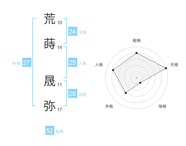 荒蒔 晟弥さんを姓名の画数から五運を鑑定