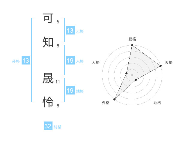 可知 晟怜さんの外格は13画の5点!