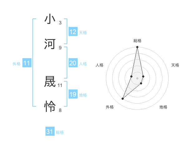小河 晟怜さんの総格は31画の5点!