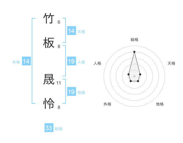 竹板 晟怜さんの総格は33画の4点!