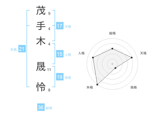 茂手木 晟怜さんの外格は21画の5点!