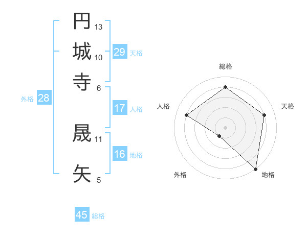 円城寺 晟矢さんの総格は45画の4点!