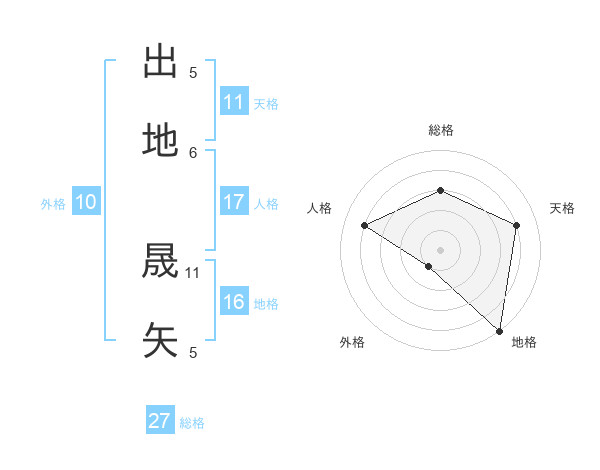 出地 晟矢さんを姓名の画数から五運を鑑定
