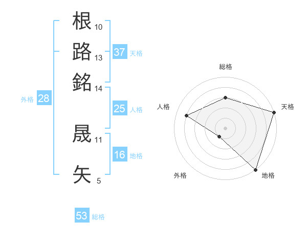 根路銘 晟矢さんの総格は53画の3点!