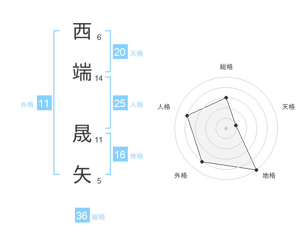 西端 晟矢さんを姓名の画数から五運を鑑定