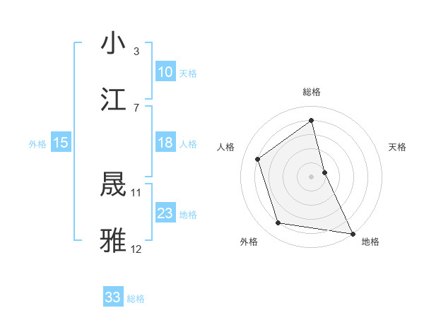 小江 晟雅さんの総格は33画の4点!