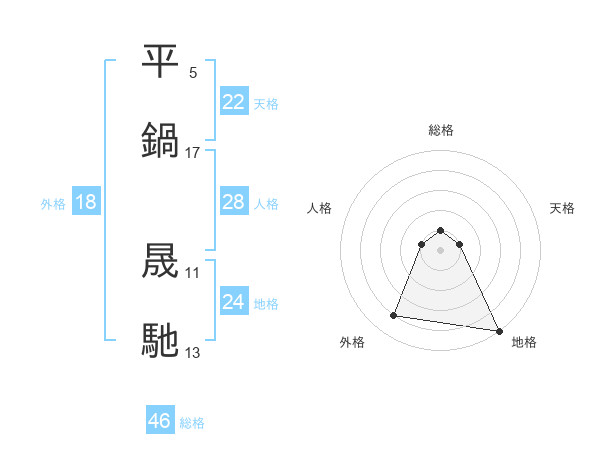 平鍋 晟馳さんの総格は46画の1点!