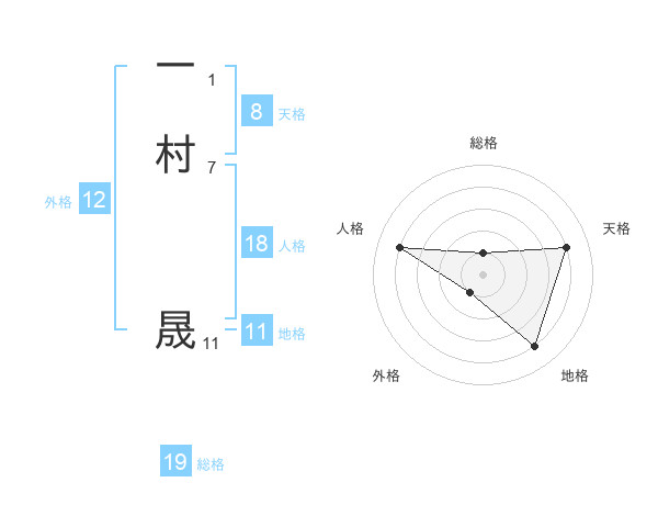 一村 晟さんの総格は19画の1点!