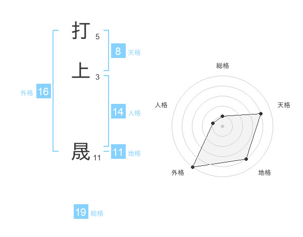 打上 晟さんの総格は19画の1点!