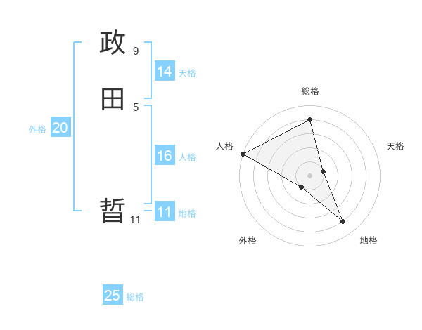 政田 晢さんの総格は25画の4点!