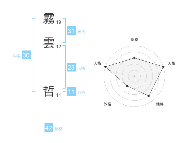霧雲 晢さんの天格は31画の5点!