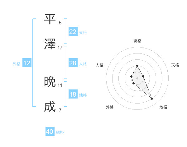 平澤 晩成さんを姓名の画数から五運を鑑定
