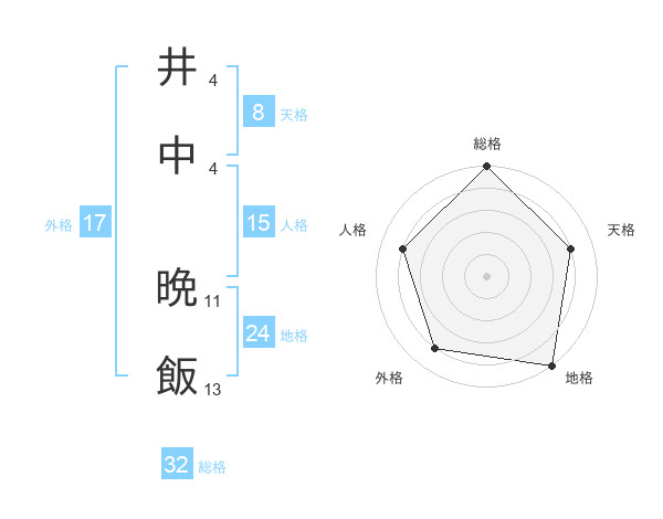 井中 晩飯さんを姓名の画数から五運を鑑定