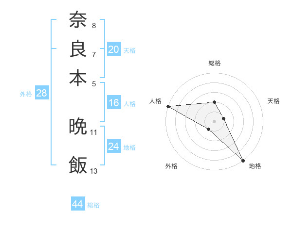 奈良本 晩飯さんの総格は44画の2点!