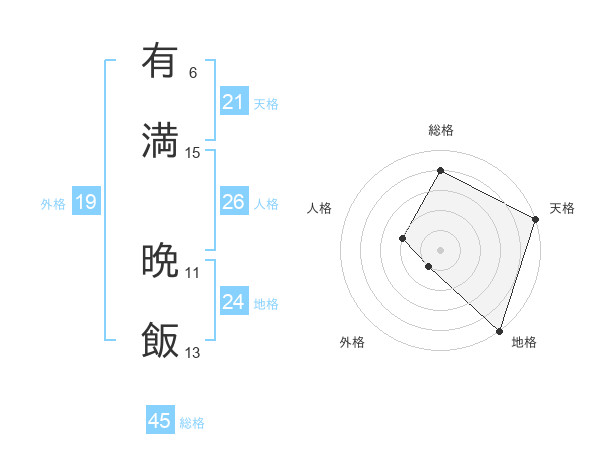有満 晩飯さんの総格は45画の4点!