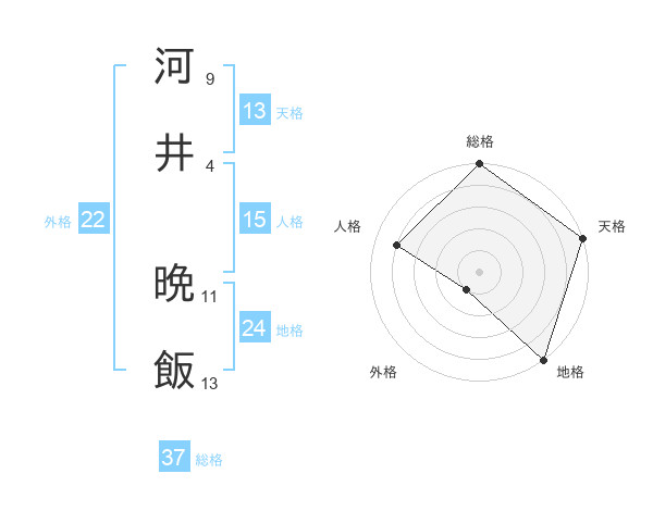 河井 晩飯さんの天格は13画の5点!