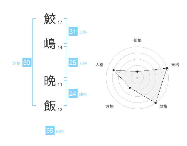 鮫嶋 晩飯さんの総格は55画の1点!