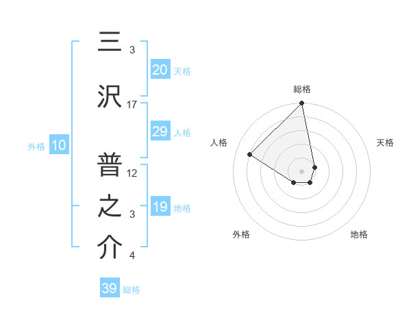 三沢 普之介さんを姓名の画数から五運を鑑定