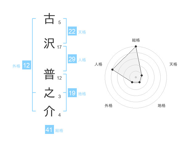 古沢 普之介さんの総格は41画の5点!