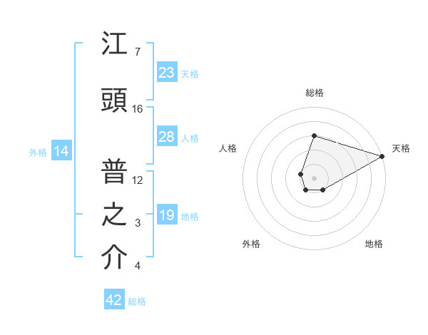 江頭 普之介さんを姓名の画数から五運を鑑定