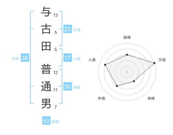 与古田 普通男さんの天格は23画の5点!