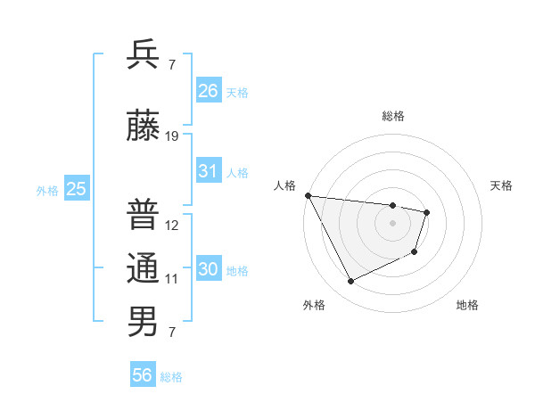 兵藤 普通男さんを姓名の画数から五運を鑑定