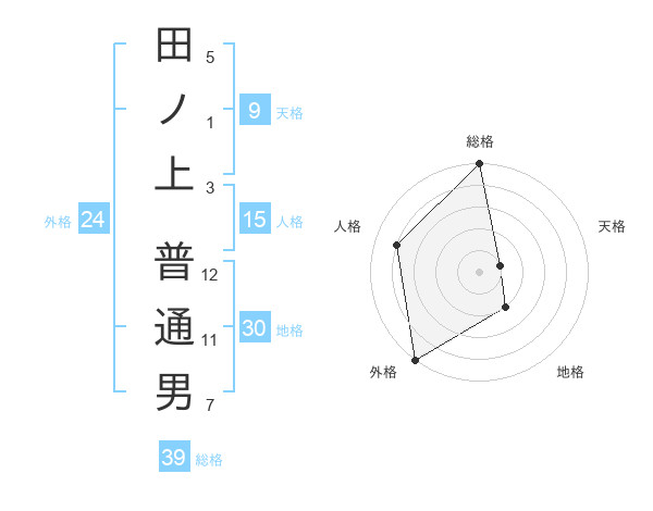 田ノ上 普通男さんを姓名の画数から五運を鑑定