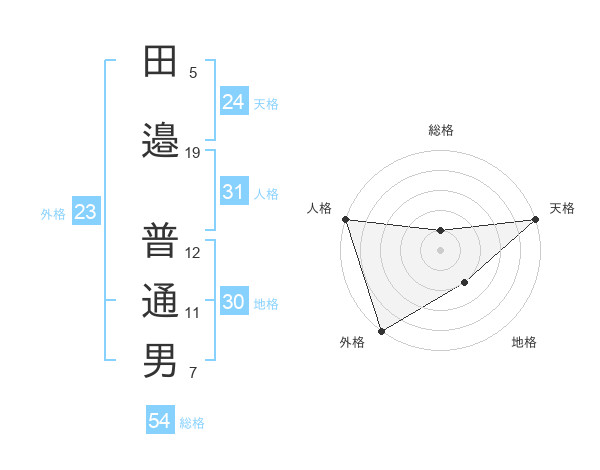 田邉 普通男さんを姓名の画数から五運を鑑定