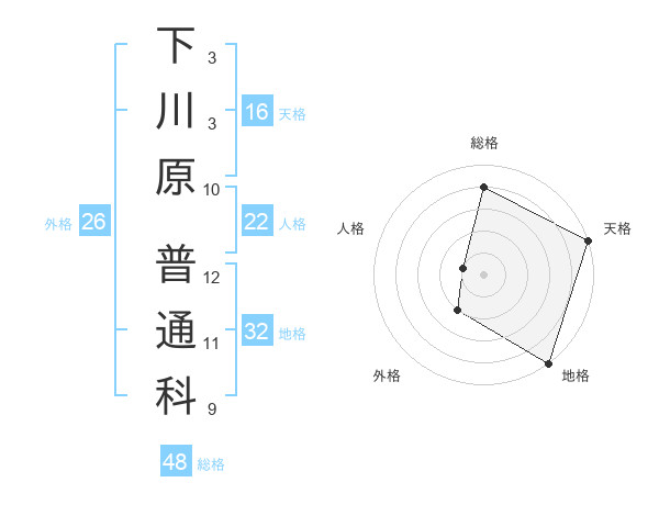 下川原 普通科さんの総格は48画の4点!